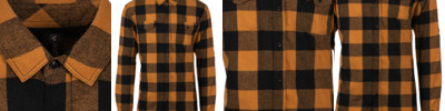 3.3 oz. 55/45 cotton/polyester; 2 chest pockets, button flaps; Front stitching and on yoke; Blue & red have black inner collar; Hem sleeves and bottom; modern fit with roll up sleeve placket;