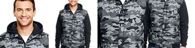6.8 oz.; Green Camo: 100% cotton; Black Camo/Blk & Solid Blk: 70% cotton, 30% polyes@er; Enzyme washed; Black drawstring; Front pouch pockets; Rib bottom and cuffs; Nylon zipper;