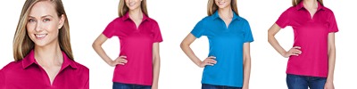 7.7 oz./yd² / 260 gsm, 100% cotton interlock with EZ Cool wicking technology; DRYTEC20™ technology offers no-pill, no-fade, no-shrink, no-curl collar, no-wrinkle performance; Active fit; Self fabric inside placket with chin guard; Inner collar in contrast self fabric; Center front coil zipper with autolock slider and faux leather pull; Princess seams for flattering feminine fit;