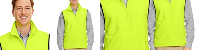 100% spun soft polyester fleece with non-pill surface finish; Dyed-to-match zippers and zipper pull; Bottom hem with drawcord and toggles; Front-zip pockets; Front yoke; Non-roll elastic cuffs;
