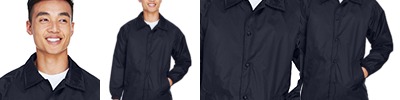 100% nylon taffeta; Wind- and water-resistant; Front welt pockets; Raglan sleeves with full elastic openings; Snap center front opening and open-bottom hem finish; InconspicuZip™ on inside for easy embroidery access; Heather Grey jersey lining (Sunray Yellow lined in White);