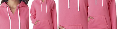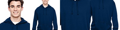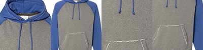 9 oz., 60% cotton, 40% polyester athletic fleece; Woven label; Hood with drawcord on Adult sizes only; Contrast color inserts; Raglan sleeves; Front pouch pocket; Rib-knit cuffs and bottom band;