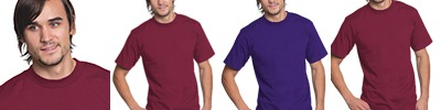 4.2 oz., polyester/combed ringspun cotton/rayon, 30 singles; Solid white, tri black, tri cranberry, tri light asphalt, tri midnight, tri navy, tri plum, tri royal blue, tri steel blue are 50% polyester, 25% cotton, 25% rayon; Tri athletic grey, tri burgundy, tri charcoal, tri denim, tri dark grey, tri maroon are 50% polyester, 38% cotton,12% rayon; Taped shoudler-to-shoulder; Double-needle sleeves and bottom hem; Made in the USA;