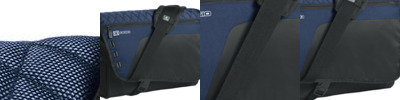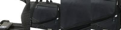 - 600D poly/420D dobby polyFlapover construction with double lock closure Interior padded laptop compartment Padded tablet/e-reader sleeve Easy access zippered pockets for business essentials Dual side beverage/accessory holsters Adjustable and padded shoulder strap Top handleLaptop sleeve: 11"h x 16"w x 1.5"d