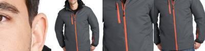This fully waterproof, wind resistant and tech-savvy jacket delivers complete protection without the bulk. Made with a polyester woven shell bonded to polyester microfleece, this color blocked soft shell is great for cold days. Movement is a breeze with four-way stretch fabric. Plus, the interior MP3 pocket keeps the tunes coming in this sleek, urban jacket.