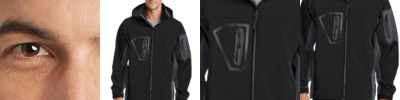 This fully waterproof, wind resistant and tech-savvy jacket delivers complete protection without the bulk. Made with a polyester woven shell bonded to polyester microfleece, this color blocked soft shell is great for cold days. Movement is a breeze with four-way stretch fabric. Plus, the interior MP3 pocket keeps the tunes coming in this sleek, urban jacket.