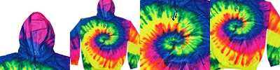 8.5 oz., 80% cotton, 20% polyester; Hand-dyed color combinations; No two are exactly alike; Wash separately; Reactive dyed tie-dye;