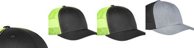 74% polyester, 26% cotton; Style is transitioning from 65% polyester/35% cotton; Mixed fabric inventory may occur; 5-panel, structured, mid-profile; Eight-row stitching on bill; 3 1/2" crown; Hard buckram backed front panels; Plastic adjustable closure; Matching undervisor; Permacurv® visor;