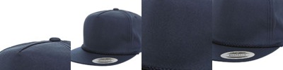 60% cotton, 40% polyester; 5-panel, unstructured, high-profile; Four-row stitching on bill; 3¾" crown; Four sewn eyelets; Matching plastic adjustable closure; Matching undervisor; Flat bill;