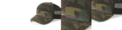 • Green Camo & Desert Camo are 97/3 cotton/ PU spandex, 100% polyester mesh back